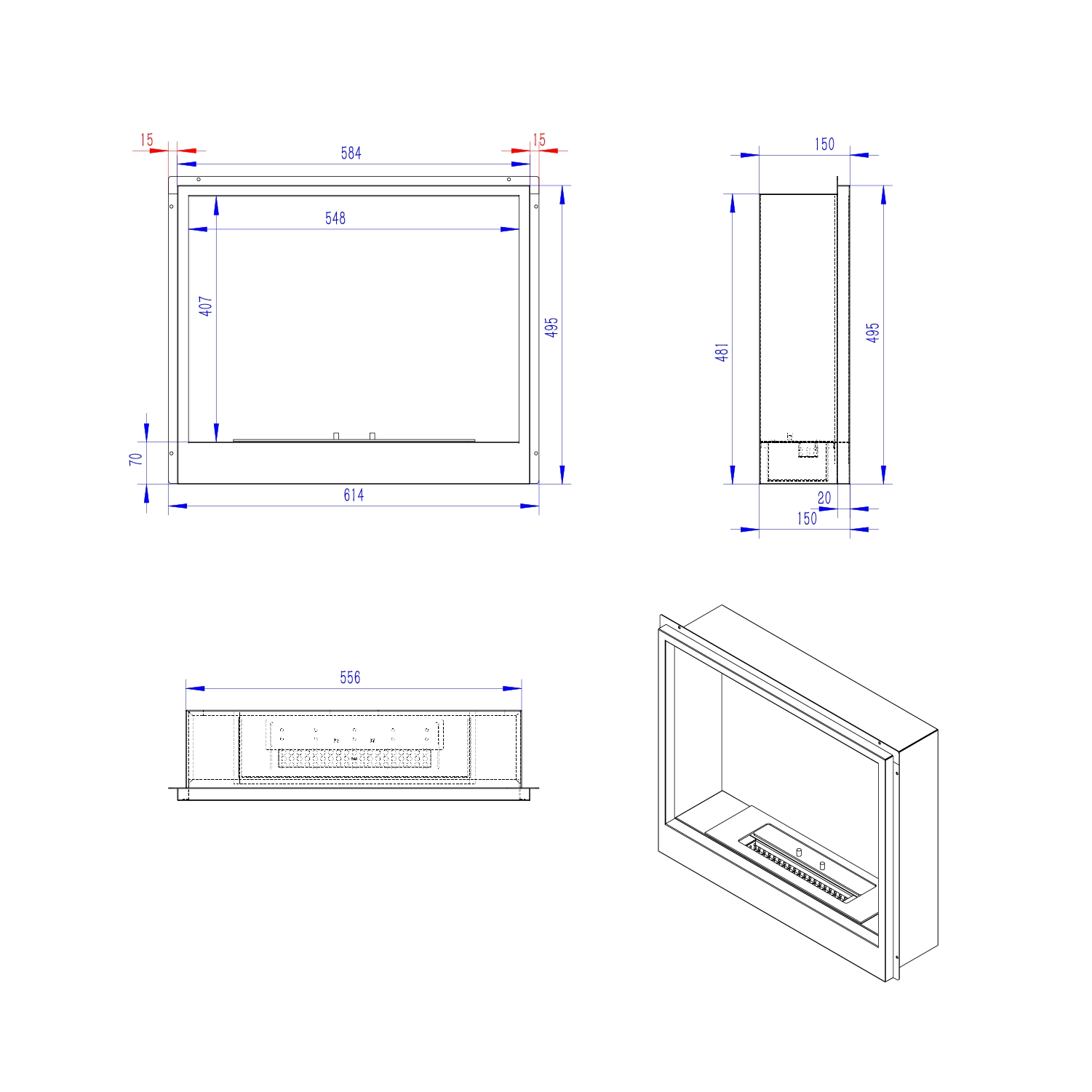 Ét-sidet biopejs indsats fra ScandiFlames, der kan bruges til indbygning i væggen, gamle kaminer eller i gør-det-selv pejseprojekter hvor man selv har bygget en pejseramme.